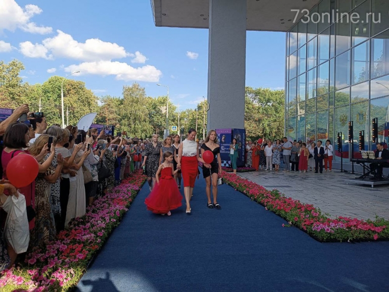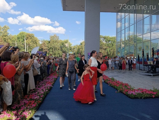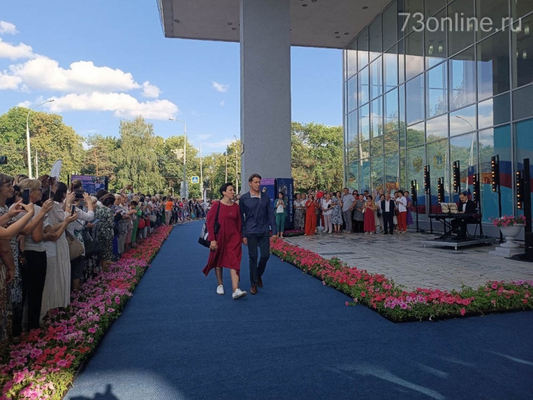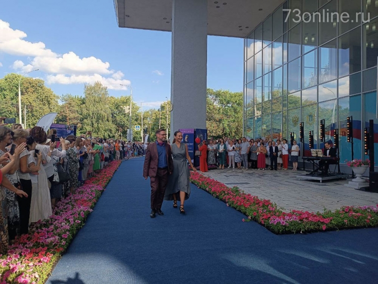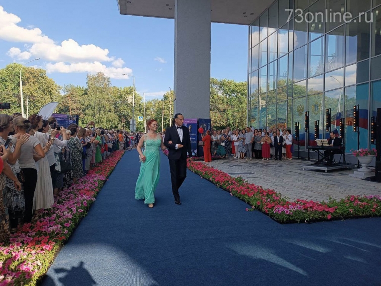 Следующими по ковровой дорожке прошла руководитель Школы креативных индустрий Мария Шпак в элегантной красной юбке-карандаше. Директор авторской школы речевого мастерства Людмила Ляшенко выбрала для торжества платье-футляр в пол и белоснежную рубашку, а ее супруг - глава администрации Засвияжского района города Наиль Юмакулов на официальное мероприятие надел парадную форму.