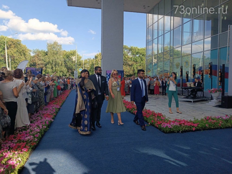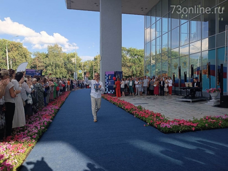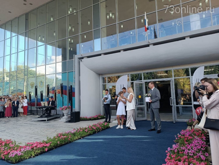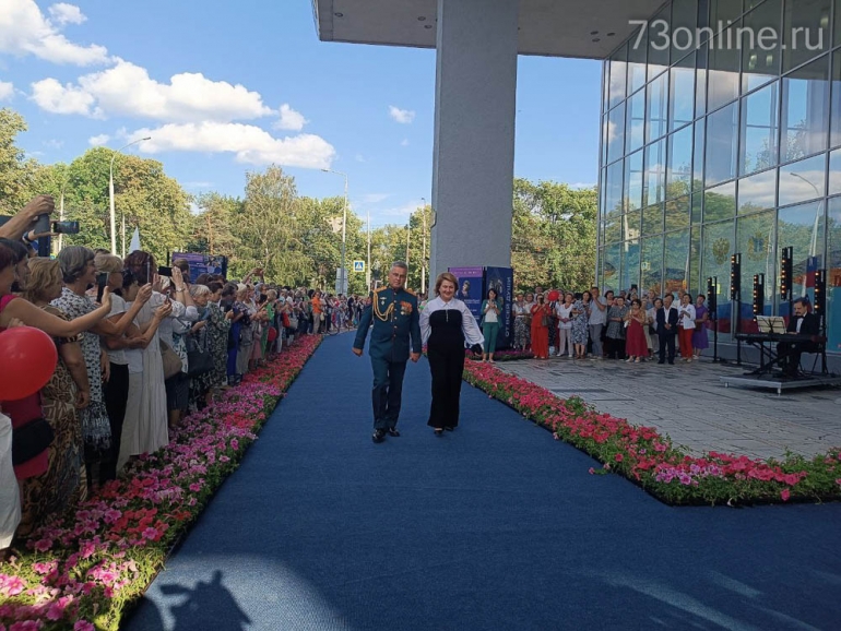К прибытию випов у ДК расстелили традиционную синюю ковровую дорожку. По обе стороны ее украсили горшками с уличными цветами. С задержкой в пару минут церемония началась.
