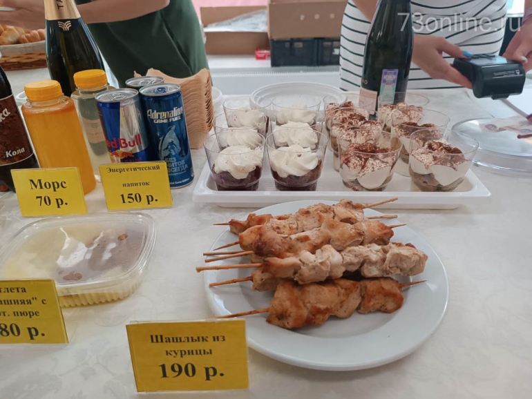 На первом этаже «Губернаторского» прямо у входа разместили столы с перекусом – шашлыками, тирамису, выпечкой, игристым, которое разливали по пластиковым стаканчикам. Однако желающих угоститься было немного: видимо, не привык еще народ к платным закускам на праздниках. На втором этаже расположилась выставка симбирцитов и окаменелостей.