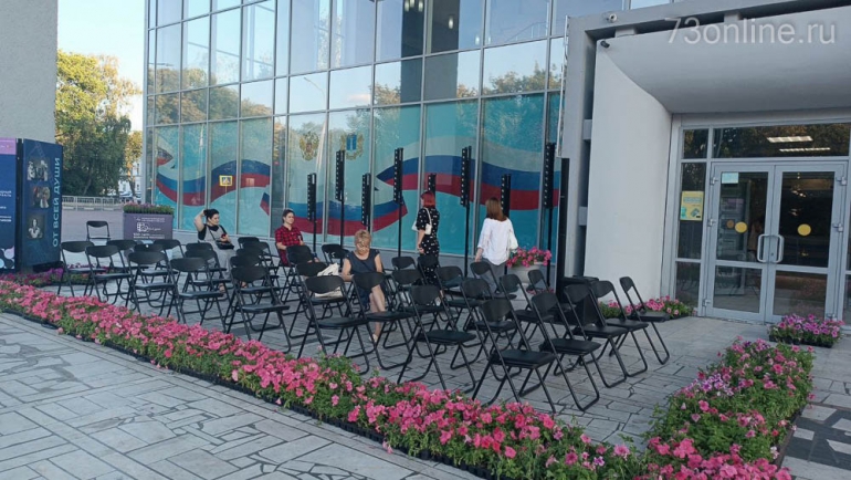 …а на выходе из «Губернаторского» установили экран и стулья для немногочисленных желающих – крутили фильм об истории Симбирского кинематографа.