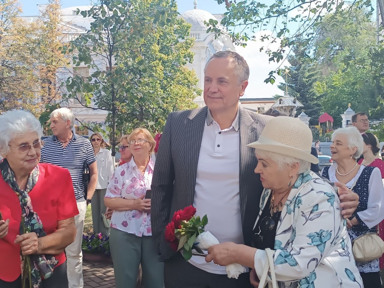 В регион прибыл Народный артист РФ и секс-идол 80-х, звезда фильма «Маленькая Вера» Андрей Соколов, который станет хэдлайнером вечернего мероприятия. Вместе с губернатором Алексеем Русских, главой минкульта Евгенией Сидоровой, президентом кинофестиваля Владимиром Хотиненко актер возложил цветы к памятнику тёте Вале на улице Гончарова - сегодня телеведущей исполнилось бы 100 лет.