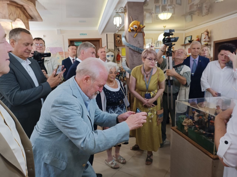 Гостям и жителям города провели экскурсию по музею, в котором оживают сказки и куклы. Хотиненко и Соколов внимательно слушали экскурсовода, а когда куклы задвигались, достали телефоны и начали снимать.