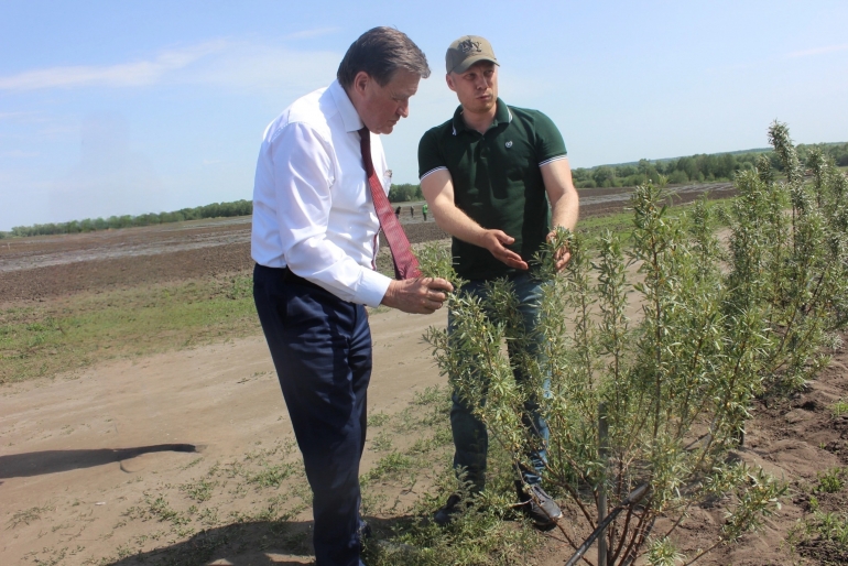 Сенатор РФ Сергей Рябухин и владелец ягодной фермы. Фото: Илья Пузраков