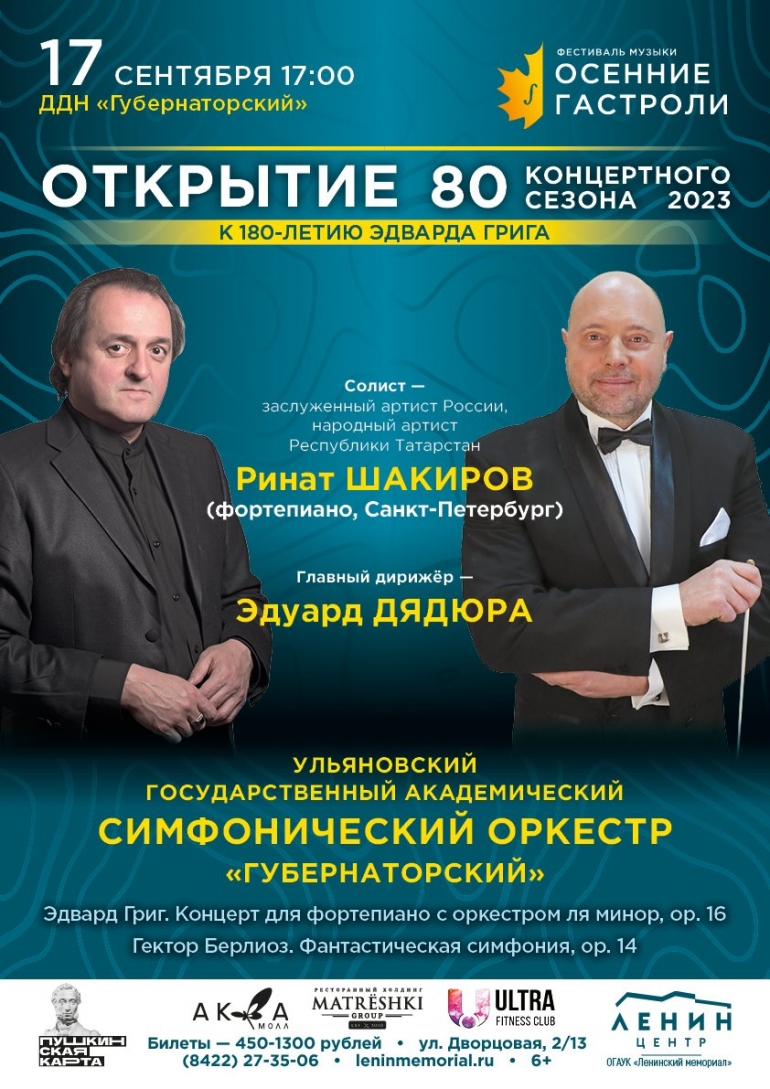 17 сентября в 17.00 в зале ДДН «Губернаторский» 80-й филармонический сезон стартует концертной программой Ульяновского государственного академического симфонического оркестра «Губернаторский» под управлением главного дирижёра Эдуарда Дядюры.