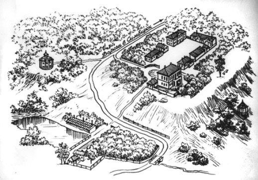 Графическое изображение усадьбы Киндяковых, сделанное ульяновским художником А. Титовским в 1980-е годы:
