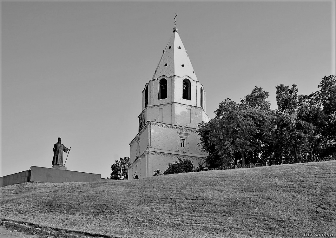Спасская башня Сызранского кремля и памятник основателю Сызрани: