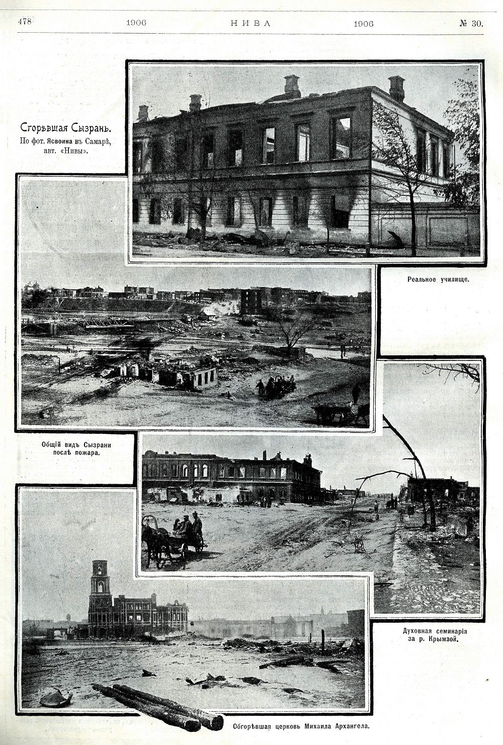 Фоторепортаж о пожаре в Сызрани на страницах популярнейшего дореволюционного журнала НИВА:
