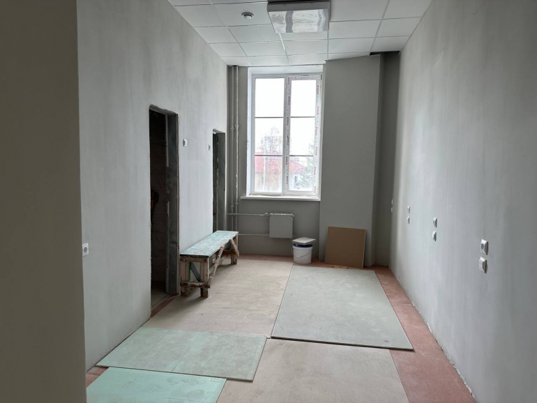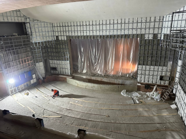 По словам гендиректора «МСУ-7» Семена Семенова, работа проведена колоссальная, здание строили с нуля. «Все основные моменты уже выполнены. Инженерные сети налажены на 95%. Сейчас ушли на первый этаж — работы ведутся в главном зале, где большая сцена. Планируем, что там все будет сделано до конца месяца».
