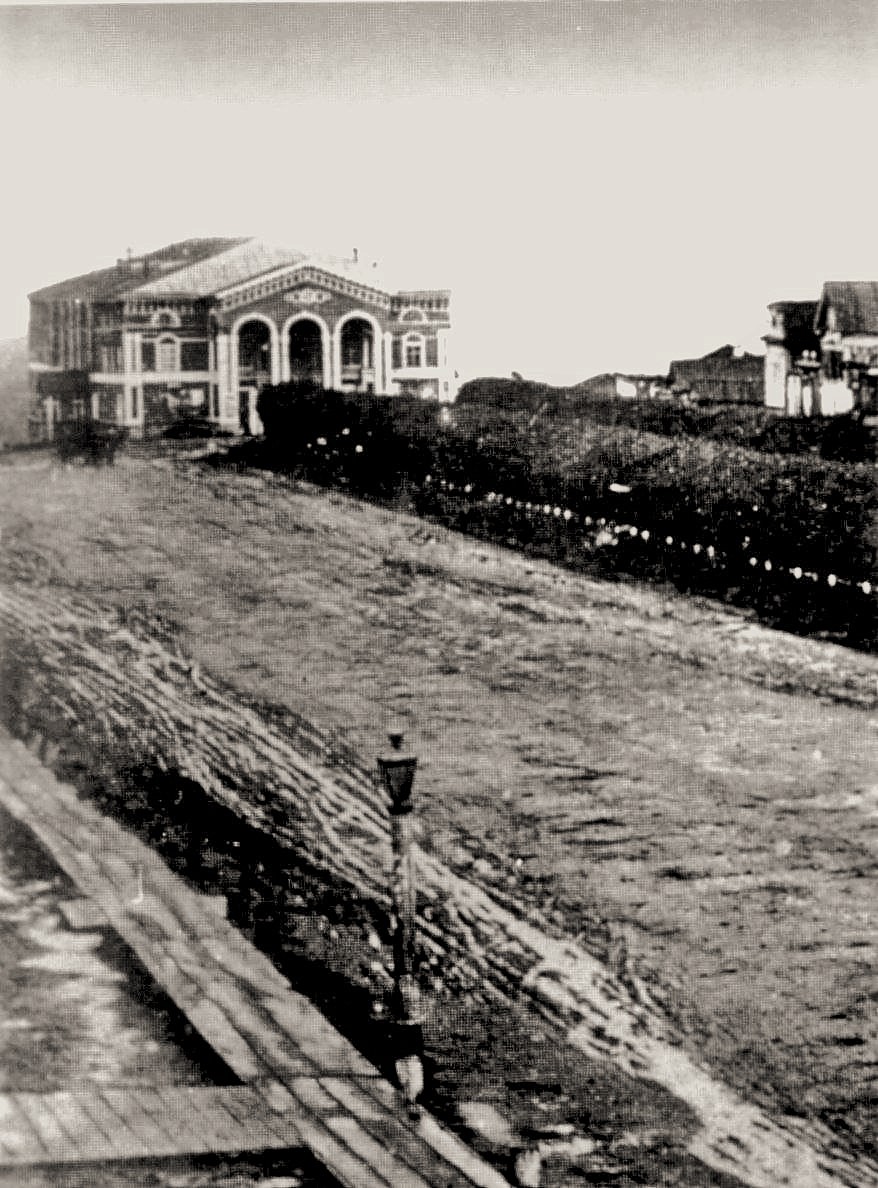 Деревянный Симбирский театр в начале Большой Саратовской улицы, на сцене которого дебютировал В. Андреев-Бурлак:
