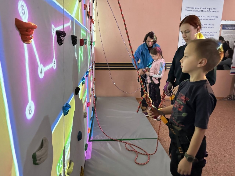 — Это интереснейшая вещь. Проецируются различные траектории, когда ребенок лезет — там бананы, обезьянки. Тысячи программ. Могут соревноваться два, три четыре человека. Происходит это в атмосфере полутемноты. Картинка проецируется все на стену, которая вся в зацепах. Ребенок лезет, программа подсказывает, правильно ли, рисует разные траектории. Такого нет нигде и ни у кого в Ульяновске, а теперь появляется, благодаря нашему фестивалю и нашему Российскому географическому обществу, — говорит Травкин.
