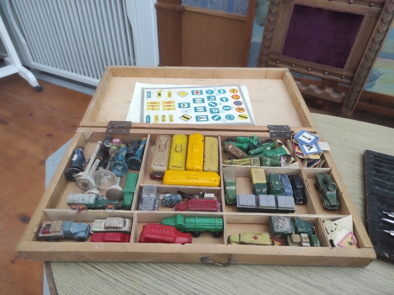 Снимки, сделанные в 70-х годах прошлого века, а также коллекция фотоаппаратов, самодельный набор для изучения ПДД, богатая библиотека, включающая книги по фотографии и столярному делу, ранее принадлежали Виктору Юстусу – работнику речпорта.