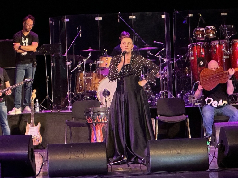Сначала на сцене появились музыканты. Их было аж 14 человек — почти оркестр. Среди них супруг певицы, барабанщик Роман Садырбаев, и два гостя с далекой, но дружелюбной Кубы. За режиссерским пультом — Александр Дробыш, брат продюсера Виктора Дробыша. Кстати, в свое время его в свою команду хотел забрать Стас Михайлов.