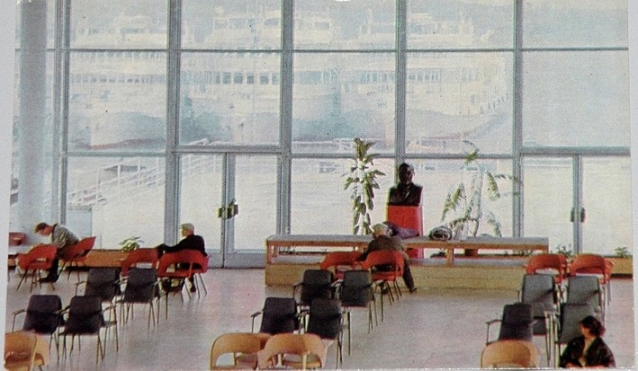 По меркам тех лет внутри были предусмотрены все удобства для пассажиров: большой зал ожидания со сплошными стеклянными стенами, великолепная панорама с видом на Волгу, на верхнем этаже – комнаты длительного отдыха.