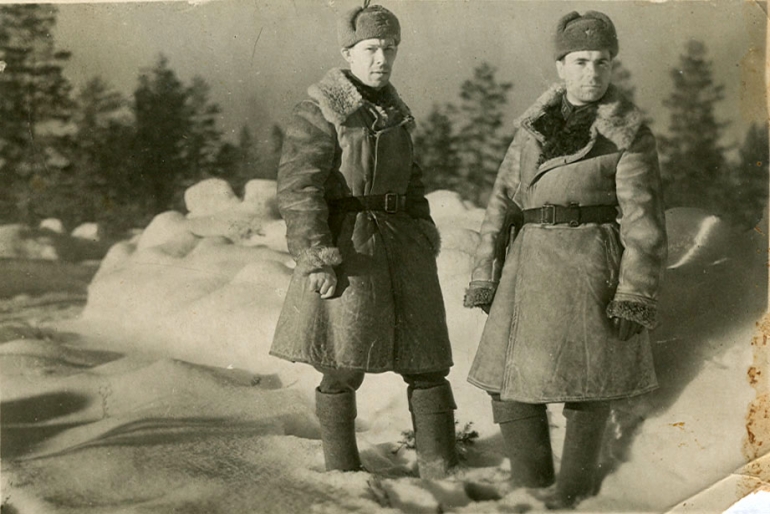 А. Маркелычев (слева), начальник штаба авиационного полка Северного фронта Иван Сенин. Ленинградская область 22 января 1943 года: