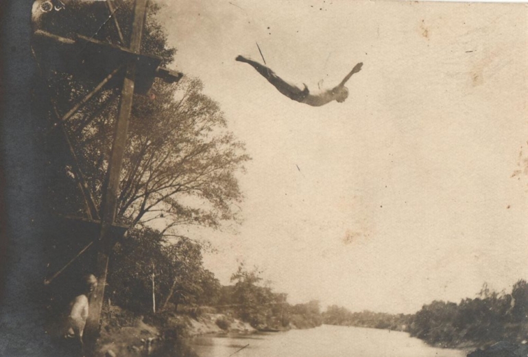 Александр Маркелычев прыгает в воду. Начало 1930-х годов: