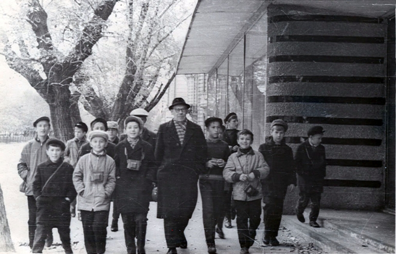 А.Маркелычев с учениками на улице Гончарова 1968 год: