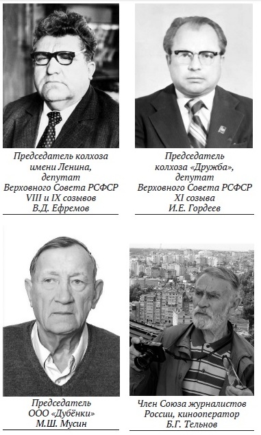 Изучение исторического прошлого родного края невозможно без исследований и книг, статей и очерков наших земляков-краеведов А.Н. Путилова и К.А. Селиванова, Н.А. Кузминского и А.М. Авдонина, Т.А. Громовой, Г.А. Сазонова и В.К. Кузьмина, В.П. Родионова и Н.И. Биткина, кинорежиссёра А.П. Ивлиева, кинооператора Б.Г. Тельнова.