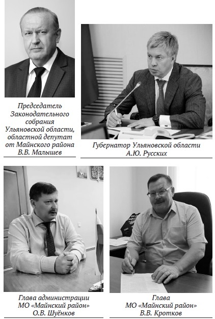 За 90 с лишним лет Майнским районом руководили десятки опытных руководителей. Многое сделано для развития хозяйства, культуры и социальной сферы района А.М. Большовым и В.А. Яковлевым, Б.В. Першенковым и Л.А. Чеченевым, Г.Д. Бурмистровым, В.В. Шагеевым и А.Н. Дорофеевым. Их дело продолжили в новых условиях нынешние руководители – О.В. Шуёнков и В.В. Кротков при активной помощи нашего областного депутата и земляка В.В. Малышева, губернаторов Ульяновской области Ю.Ф. Горячева и В.А. Шаманова, С.И. Морозова и А.Ю. Русских, которые неоднократно бывали в сёлах и посёлках Майнского района. Не случайно наш район является одним из самых крупных и передовых в Ульяновской области.