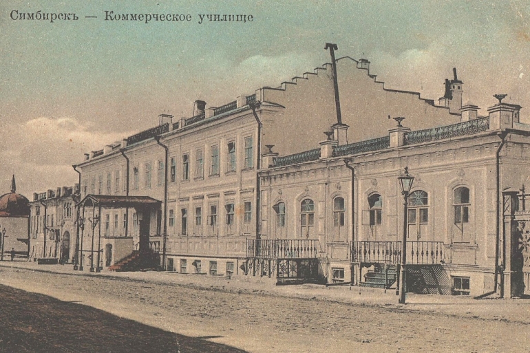 Симбирское коммерческое училище (ныне утрачено) располагалось в доме, подаренном Н. Шатровым. Открытка начала XX века: