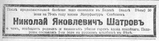 «В числе местного купечества владелец суконной фабрики при с. Измайловке, потомственный почетный гражданин 1-й гильдии Николай Яковлевич Шатров обращает на себя особенное внимание своею выдающеюся благотворительною и общеполезною деятельностью.