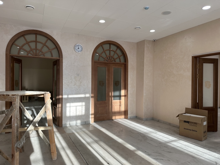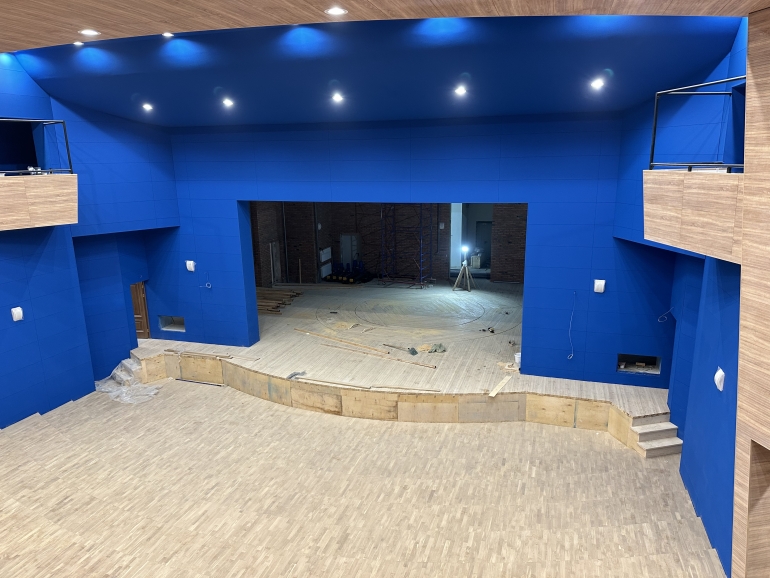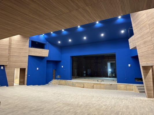 Журналист 73online.ru лично оценил степень готовности будущих залов, гримерных комнат для артистов, пошивочного цеха, студии звукозаписи, холлов и других помещений.