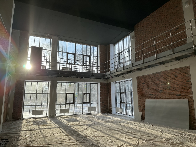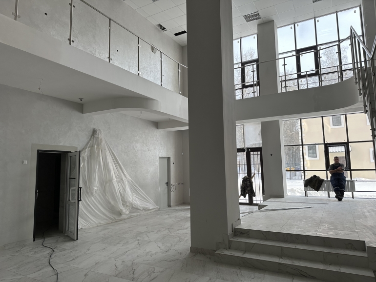 Масштабная стройка подходит к финалу, сейчас проходят заключительные отделочные работы, монтаж оборудования. Рабочие рассредоточены по этажам - наводят последний марафет. Напомним, с «Родиной» попрощались в апреле 2021 года.
