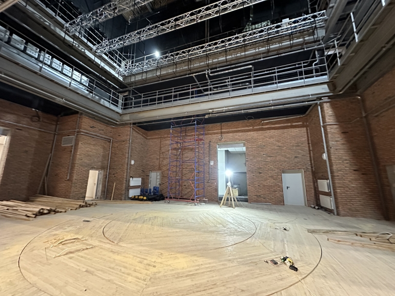 Самый сложный проект в театра - это сцена, на которой установлены два поворотных круга, есть лючки, откуда совсем скоро будут появляться актеры. «Очень красиво получилось, мы сами довольны результатом», - признается подрядчик.