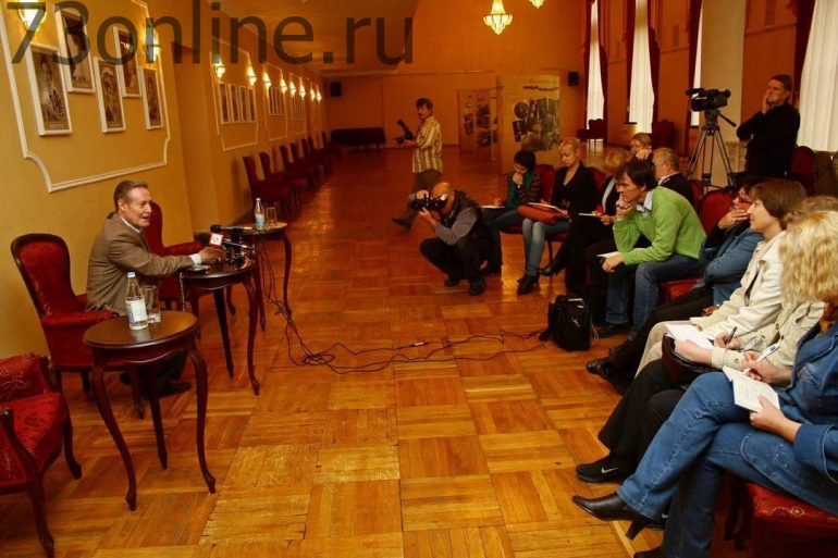 Перед спектаклем Наталья Никонорова нанесла «визит вежливости» художественному руководителю Малого театра Юрию Соломину. Встреча прошла в легендарном кабинете мэтра, где он тепло приветствовал ульяновских коллег и долго беседовал с ними о театре.