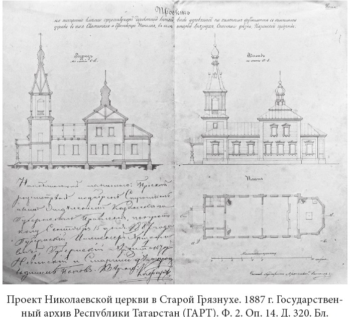 Но почему Грязнуха — старая? На карте Спасского уезда Казанской губернии начала XX в. (и других дореволюционных) село обозначено как «Никольское Грязнуха». Первое название — по Николаевскому храму. Здесь надо напомнить, что рядом с селом находилась деревня Новая Грязнуха — по той же карте — «Выселок* села Никольского». Если село известно, как минимум с 1674 г., то деревня — примерно с начала XIX в (42) (Мордвинов Ю. Н. Указ. соч. С. 234, 239). Ю. Н. Мордвинов писал: «Интересно, что Поливанову (один из владельцев села — Е.А. Б.) что‑то не понравилось в селе, и он переселяет своих крестьян на другое место, образовав выселок, названный по селу Никольским (Новую Грязнуху), потому основное село Грязнуха с начала 19 века стало называться Старой Грязнухой…» (43) (Там же. С. 235). На картах эти новые названия стали отображаться уже после 1917 г.