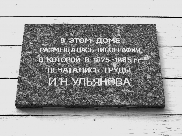 Старинный одноэтажный дом № 73 по улице Ленина, бывшей Московской, с советских времён украшает информационная табличка: «В этом доме размещалась типография, в которой в 1875-1885 годах печатались труды Ильи Николаевича Ульянова». Ныне в доме размещаются экспозиции «История типографского дела в Симбирске» и «Музыкальная жизнь в Симбирске второй половины XIX – начала XX веков».