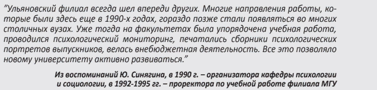 На этапе филиала МГУ в работу факультета закладываются идеи, которые будут успешно реализованы позже, в период его жизни в рамках Ульяновского университета.