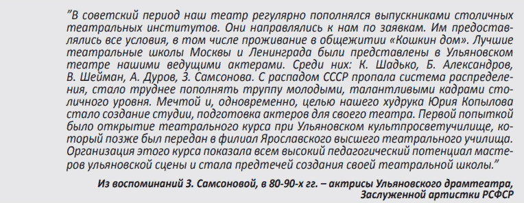 Богатый на таланты Ульяновский регион на протяжении всей своей истории признается одним из центров отечественной культуры, ведущим в области литературного и художественных направлений. К началу 90-х годов территория области имеет развитую сеть учреждений культуры и искусства. При этом во дворцах культуры, театрах, библиотеках, клубах катастрофических масштабов достигает дефицит кадров с высшим профильным образованием.