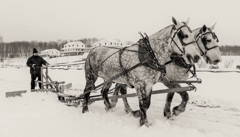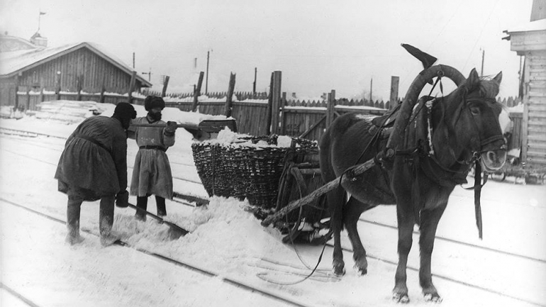 Во время серьёзных снегопадов снег расчищали при помощи тех же лошадей – впрягали в особые волокуши или снежные плуги, как называли эти нехитрые устройства, которыми, кстати, до сих пор пользуются в некоторых сельских местностях.