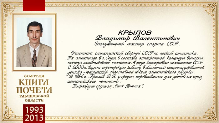 — У нас в поселковой школе (Крылов из Силикатного – пр.ред.) учителем физкультуры работал Михаил Максимович Савоськин. Серьезный такой мужчина, прошел войну. Он говорил, что мне обязательно надо в спорт, потому что есть серьезные природные задатки. К тому же, двоюродные братья занимались легкой атлетикой, брали с собой на тренировки и соревнования. Сначала зародилась мечта сдать норматив мастера спорта. Когда приехал в Ульяновск, быстро получилось сделать — за год. Потом появились другие цели. Меня это захватило.