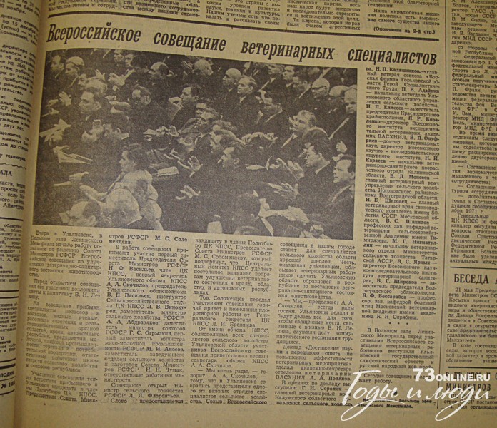Вчера в Ульяновске, в Большом зале Ленинского Мемориала, начало работу созванное по решению Совета Министров РСФСР всероссийское совещание по улучшению ветеринарно-санитарного состояния животноводства.