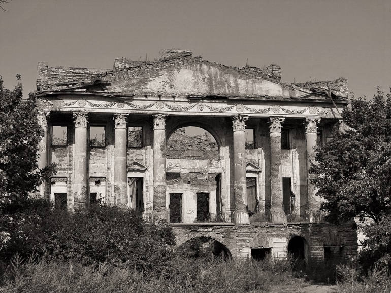 Руинированный главный дом подмосковной усадьбы князей Вяземских Пущино-на-Наре: