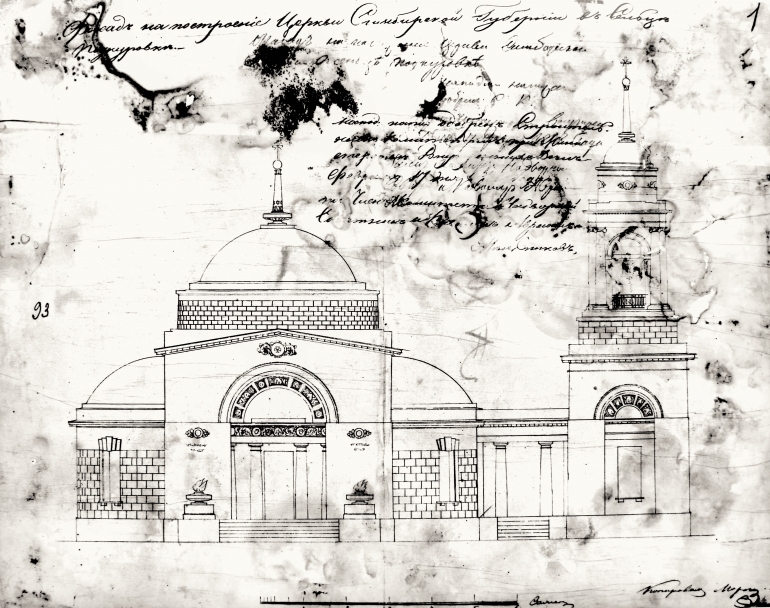 Сохранившийся чертёж Подкуровского храма (на фото слева) являет, что церковь должна была быть внутри и снаружи великолепно отделана лепниной, в духе той, что покрывает Троицкую церковь в селе Пятино Инзенского района, бывшего Карсунского уезда, возведённую в тех же традициях классицизма. Но работы по отделке не были доведены до конца из-за печальных событий: в 1830 году Российскую империю накрыла свирепствовавшая два года эпидемия холеры – почти полмиллиона заболевших и двести тысяч умерших. В виду опасности и было принято решение поторопиться с освящением храмов. Хорошо, конечно, любоваться внешним благолепием, но церковь, в первую очередь, предназначена для молитвы.