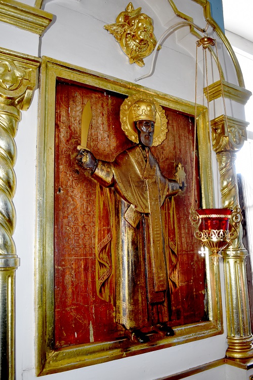 С другой стороны, возможно, ляховцы каким-то особым образом почитали старую церковь и находившиеся в ней святыни? Ведь именно в иконостасе древнего деревянного храма находилась древняя же икона Нерукотворенного Спаса, в честь которого была названа каменная ляховская церковь: «Вверху ангелы поддерживают убрус, а внизу изображены в молитвенном настроении святой Савватий и великомученица Екатерина».