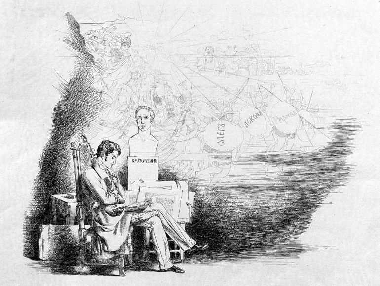 Карамзин вдохновляет художника писать сюжеты из русской истории. Рисунок Ф. Бруни: