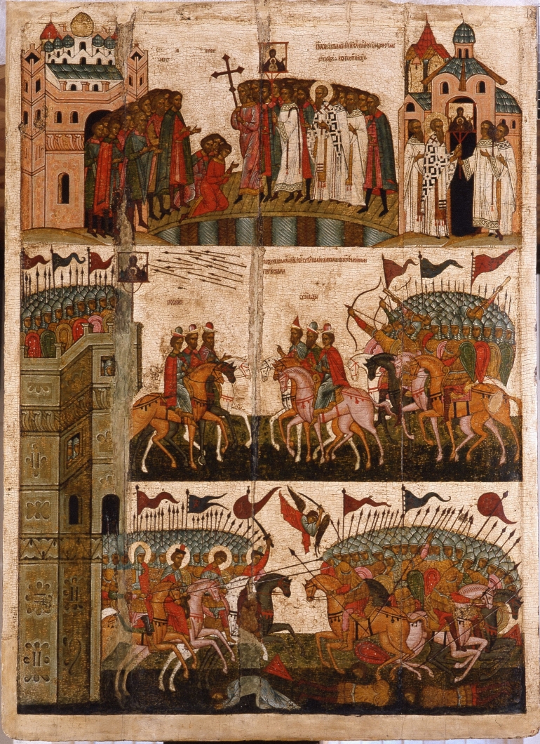 Не надеясь более на мечи и стрелы, новгородцы вынесли на стену икону Богородицы – дадим слово Николаю Михайловичу Карамзину: