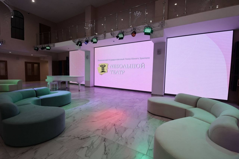 Просторное фойе высотой восемь метров станет не просто зоной ожидания спектаклей, а превратится в арт-пространство для интерактивных программ, выставочных проектов, инсталляций, камерных музыкальных вечеров и так далее.