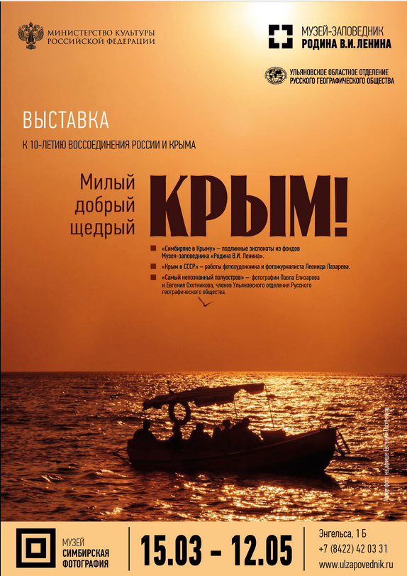 Выставка приурочена к десятилетию воссоединения Крыма с Россией. Она состоит из трёх разделов: «Симбиряне в Крыму», «Крым в СССР», «Самый непознанный полуостров».