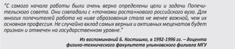 Заложенная с момента основания система работы позволяет попечителям «держать руку на пульсе» жизни университета и Ульяновской области в целом.