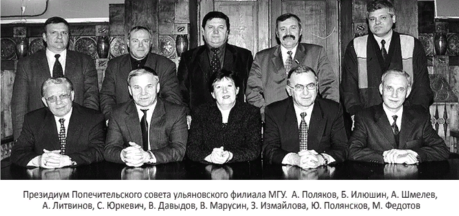 В начале 1997 года происходит смена Президента Попечительского совета филиала МГУ. Завершается более чем четырехлетний период работы попечителей под руководством Михаила Федотова, генерального директора Ульяновского завода тяжелых и уникальных станков, бывшего областного партийного руководителя. По признанию современников, за это время университет вырос и обрел контуры самого современного учреждения. Большую роль в этом сыграла поддержка попечителей и меценатов. Что не менее важно, университет превратился в центр делового содружества, стал местом для обсуждения и решения проблемных вопросов вуза и предприятий, площадкой для неформального дружеского общения.