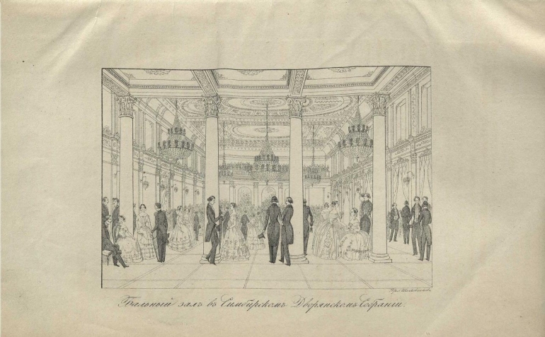 Важно уточнить, что новое здание Дворянского собрания построено в конце 1847 года и 1 января 1848 года было открыто. Описывая две февральских недели 1850 года как сплошную череду балов, званых обедов и других увеселений, особое внимание автор корреспонденции из Симбирска уделил балу, данному симбирским дворянством новому начальнику губернии князю Петру Дмитриевичу Черкасскому.