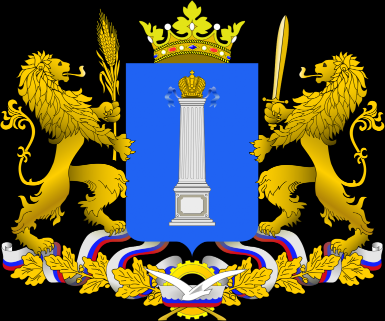 «Герб Ульяновской области имеет в своей основе изображение исторического герба Симбирской губернии и представляет собой: В лазоревом щите серебряная колонна, увенчанная императорской короной с лазоревыми лентами. Щит увенчан традиционной земельной короной (с тремя видимыми листовидными зубцами). Щитодержатели – золотые львы. Из них один держит в правой передней лапе меч, а другой – сноп того же металла. Подножие – золотые дубовые ветви, в центре которых золотая шестерня и летящая вправо серебряная чайка, перевитые лентой цветов флага области».