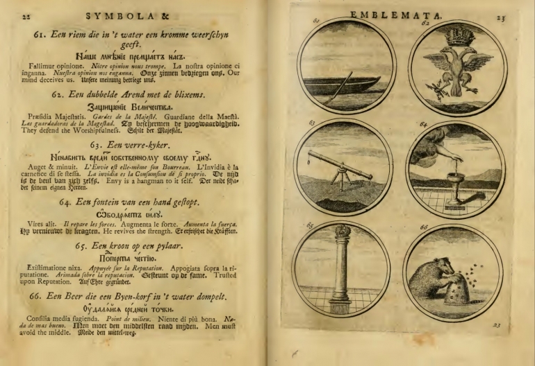 "Символы и эмблемата" 1705 года. За №65 увенчанная короной колонна, легшая в основу Симбирского герба:
