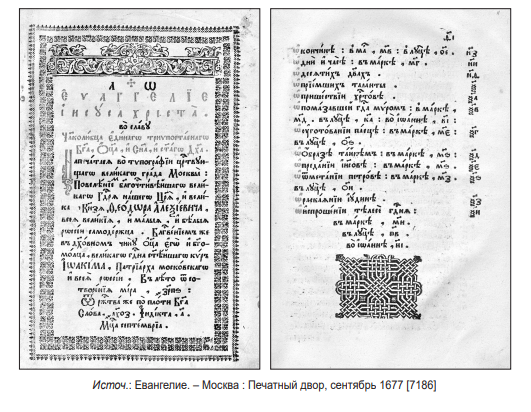 - (26) см.: Евангелие. – Москва : Печатный двор, сентябрь 1677 [7186].