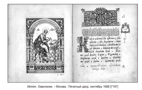 - (28) см.: Евангелие. – Москва : Печатный двор, сентябрь 1688 [7197]. – 497 л.