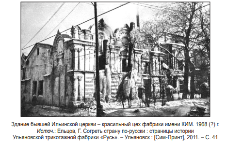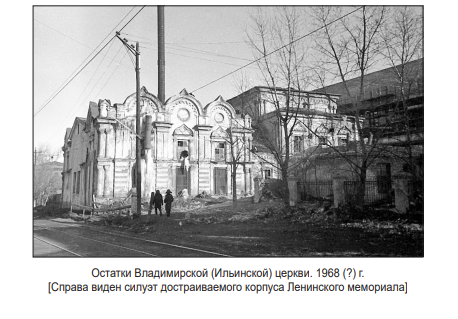 Остатки Владимирской (Ильинской) церкви были окончательно разобраны в конце 1968 г. в связи со строительством Ленинского Мемориала (46). Перед этим фабрика КИМ переехала в новые корпуса, построенныев Киндяковке (47).